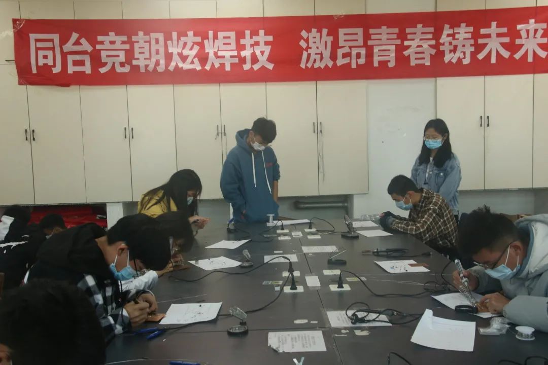选手们开始了一场激烈的头脑风暴,赛场上比赛氛围严肃而又激烈。立志欲坚不欲锐, 成功在久不在速,铜板上一条条光滑的电路是选手们长期练习的成果,每一位选手都将自己的作品尽力做到了极致。比赛结束后,评委们根据作品的完成程度、焊接外观、焊接手法、作品效果等多方面进行了客观公正的评分。