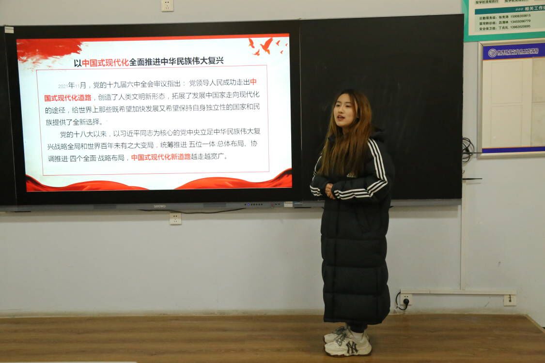 青春心向党,扬帆正起航。为了深入学习贯彻党的二十大精神,强化广大团员青年的政治品格,延续红色血脉,夯实精神之本,熔铸精神之源,11月13日,探花 在西校区十号楼c221、c224带领团支部深入学习研究党的二十大精神,青年学生讲师团三组王崇娟、李珞璇担任主讲人。