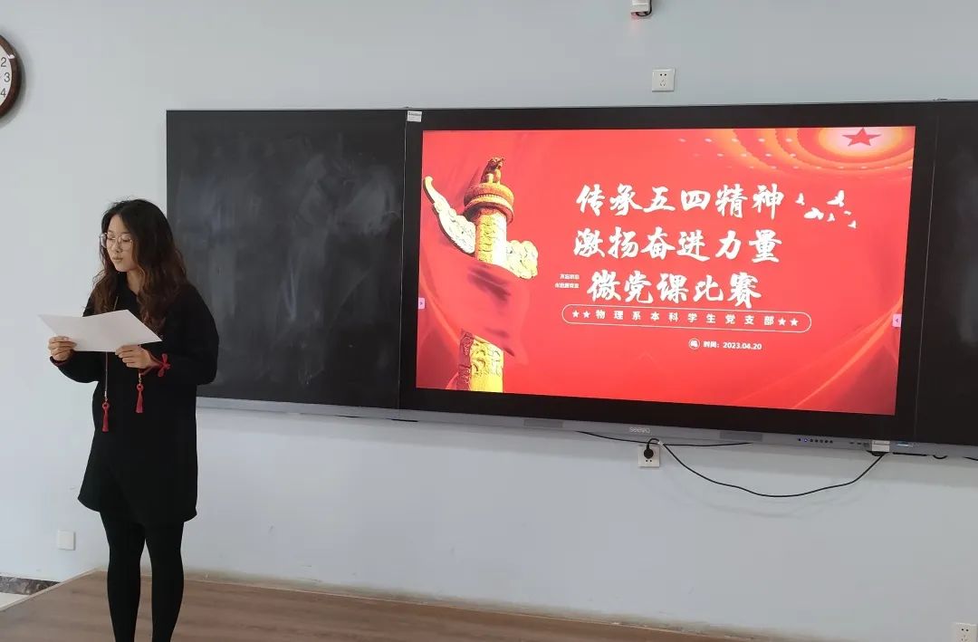 为纪念五四运动一百零四周年,弘扬五四精神,赓续红色血脉,落实学习强国理念,4月27日,探花 于西校区十号楼C220举办物理系本科学生党支部“强国有我”微党课比赛,探花 学生党员踊跃参与。