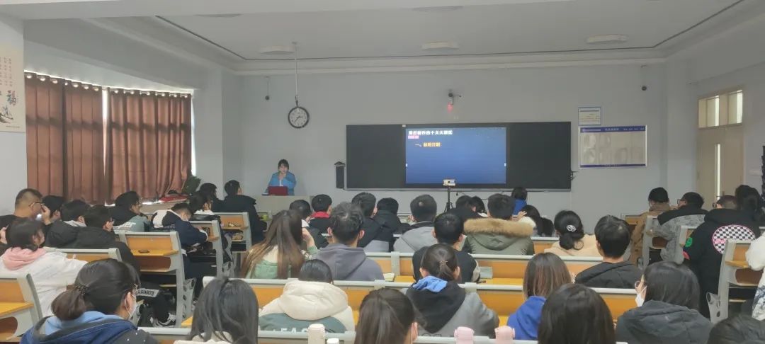 培训活动开始前,工作人员布置会场,入口处安排同学引导前来参加活动的学生入座,为同学们解答相关问题。此次活动特邀请齐鲁人才研究院职业规划中心主任、职业化团队成长教练与训练师、职业规划师高校就业创业导师高报咨询师张雪娇老师为我们进行培训讲解。