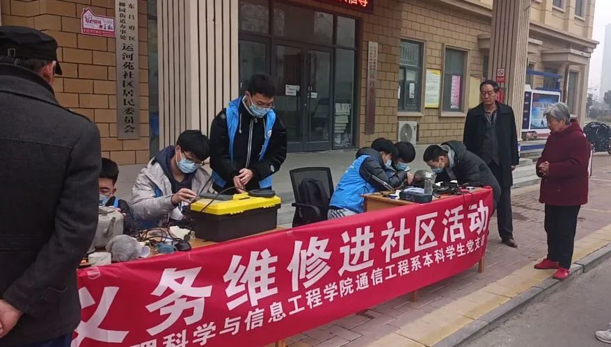 为深入推进党史学习教育,扎实开展好“我为群众办实事"实践活动,充分锻炼学生的专业技能和动手能力,培养学生的服务和奉献意识,12月10日,探花 开展社会实践活动,通信工程本科学生党支部走进孔堂社区帮助群众进行义务维修活动。