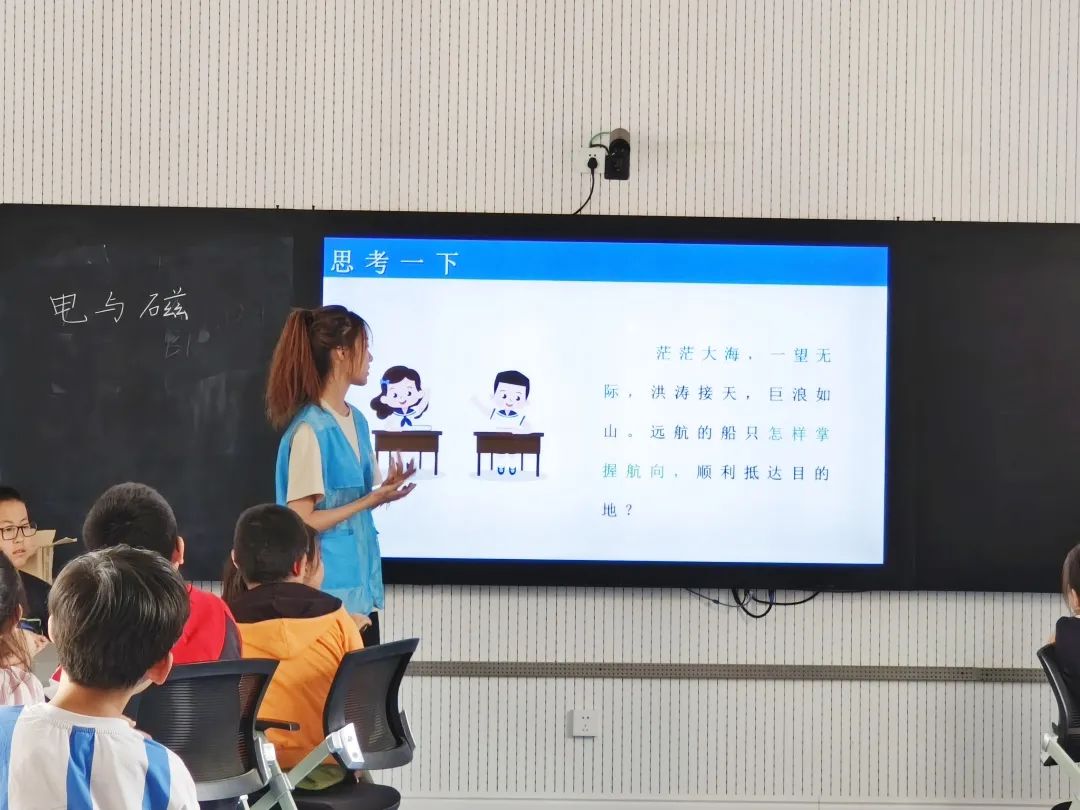 本次科技微课堂走进三年级一班和三年级二班,共有84名小朋友听课。授课过程中,志愿者们细致耐心的讲解了磁是什么、电和磁的关系以及有关磁铁的科学知识,通过一段短视频让小朋友们初步了解到电生磁的基本原理。在面对志愿者们抛出的问题时,小朋友们积极动脑思考,踊跃举手发言,课堂气氛活跃,小朋友们纷纷沉浸在学习科学知识的快乐之中。