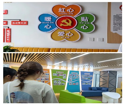 在吉林两新党建长白山红色孵化基地,讲解员首先强调了它既是全省基层党建的重点工程项目,也是推动该市两新党建工作的重要载体。在这个集孵化组织、孵化人才、孵化企业、孵化项目于一体的孵化基地,实践队员们参观了永不落幕的红博会、直播间、路演舞台、爱心积分超市(红心、暖心、爱心、贴心)、长白山帮帮团,在讲解员的解说下、在与产品的深刻接触下以及在制片人对动画制作的展示下,实践队员们深刻感受到了“两新”党建引领,推动”两山”转化,是推动新时代白山全面振兴的”助推器”,是红色基因的传承,是时代发展的新篇章。