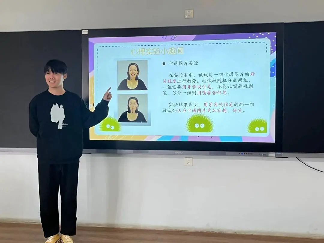 在本次活动中,五位主讲人通过丰富多彩的PPT深入探讨了大学生们密切关注的五个方面的问题。他们以简洁明了的文字,阐述了微笑的魔力,微笑是一种简单而又容易实践的行为,通过微笑,我们能够与他人建立更好的联系,增进彼此之间的了解和友谊,随后主讲人以一个小游戏引出了社交恐惧症的定义,并为同学们详细阐述其益处,以及如何积极应对社交恐惧症。接着,他们用充满活力的语言分享了关于绰号的故事,向同学们传达了一个重要的信息——不要轻易给他人贴上标签。每个人都有自己独特的价值和梦想,我们应该尊重他人的个性和努力。通过理解他人的故事,我们可以去掉先入为主的刻板印象,融洽的相处,创造更加和谐的人际关系。在活动的尾声,他们巧妙地利用电影《寻梦环游记》深入讲解了关于生命健康的议题。活动中,热情洋溢的气氛感染了在场的每一位同学,他们积极参与互动交流,在聆听与交流过程中建立起了良好的情绪管理机制。