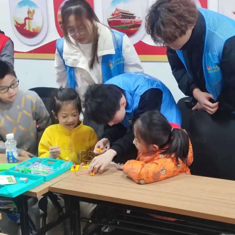 在本次课程中,志愿者们用提问互动的形式活跃课堂氛围,激发小朋友在课堂中的积极性,为大家详细讲解了什么是固体、液体、气体以及其具有哪些特点,运用生活中常见的例子,让小朋友们形象直观地了解不同性质的物质。在此基础上,志愿者们还介绍了雾的形成和蒸汽机的工作原理,拓宽了小朋友的科学视野。课程进行中,志愿者们开展了拓展试验——趣味电路迷宫,鼓励小朋友们在游戏中学习,在合作中进步。接下来志愿者们以有趣的光现象,激发小朋友们的好奇与兴趣,引起大家的思考,为小朋友们讲述了如何判断光源、光的特性以及光对人类生活的重要性。课程结束后,志愿者们为鼓励小朋友们积极探索,为大家发放了课程积分卡。