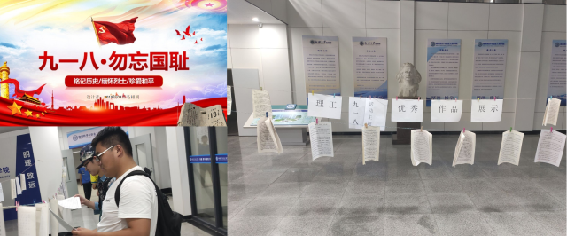 同学们通过征文、手抄报和PPT的形式上交作品,抒发对先烈的缅怀之情,同时也表达了自强奋进的决心。本次活动围绕九一八事件的惨烈教训及当代青年的反思与总结展开,共收到200余份作品,并在10号楼大厅进行优秀作品展示。精美的PPT展现了89年前的凄惨画面,深切地触动心弦;手抄报图文结合,以细腻的笔触和生动的画面讲述了爱国故事;一篇篇感悟把学生对于九一八精神的理解淋漓尽致地展现出来,透露着理工学子对家国的深切情怀。其中吴薛凯在征文中写道:“是抗战烈士用自己的血肉,筑起中华民族不倒的长城。时间可以过去,历史不容遗忘!致敬人民守护者,铭记国耻,英雄安息!”字句之间表达了强烈的爱国情感。观看作品展的同学纷纷感慨,从这次的活动中看到了大学生的责任与担当,要从历史中吸取教训,进一步坚定发奋图强的信念。