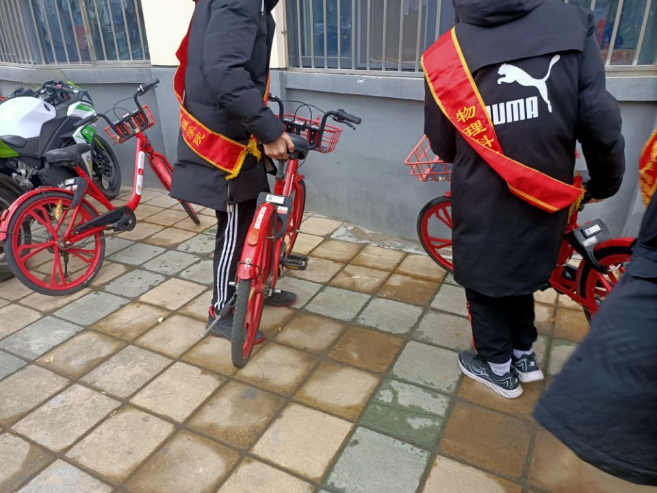 负责人活动前根据志愿者人数进行随机分组,同学们以分配的小组为单位,分工合作,各司其职,即使天寒地冻,同学们依旧气势昂扬,努力完成工作。同学们依据分工清理校园墙壁上的广告和道路上的落叶,在负责人的带领下重新摆放校园内共享单车,并对共享单车进行清洁,洁净的街道和墙壁展示着学生们的努力成果,街角里自行车的整齐摆放体现着同学们的严谨细心。在同学们的努力下,整个校园变得干净整洁、井然有序。最后,负责人对活动进行总结,伴随着一张“公益者全家福”的出镜,本次活动圆满结束。