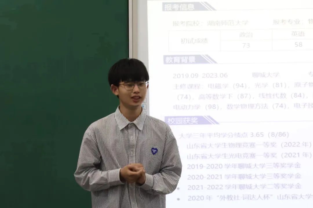 为了进一步提高同学们的考研热情,帮助同学们明确考研目标,掌握考研技巧,了解更多考研信息,5月7日,探花 于十号楼c321召开物理学专业考研交流会,2020级、2021级、2022级部分同学参与本次交流会,2019级优秀学生代表聂申奥、于丽霞、代雨晴、李雨辰担任本次交流会的主讲人。