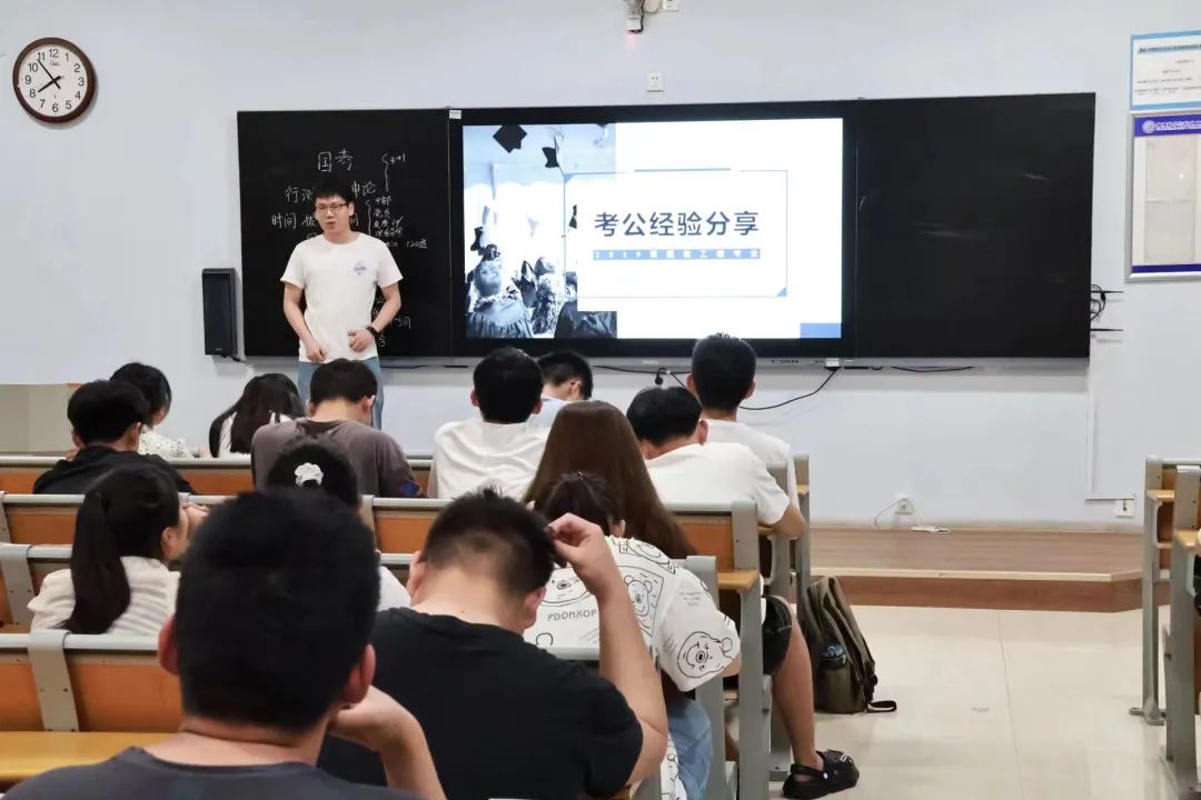 为了帮助同学们更好地了解考公的相关政策,促进学风建设,明确学习目标,更加科学地规划学习计划,探花 于十号楼c220举办考公经验分享交流会,通信工程系本科学生党支部史艳、张吉元担任本次交流会的主讲人。