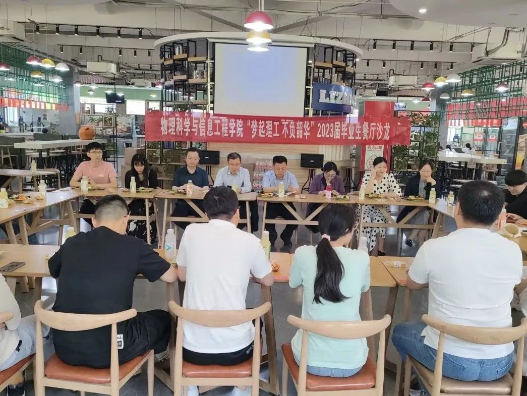为推进毕业生离校工作的顺利开展,给毕业生上好“最后一课”,5月31日,探花 在湖苑餐厅一楼举办“梦起理工,不负韶华”毕业生餐厅沙龙活动。探花 党委书记高金华,副院长王明红,副书记、副院长吴成,副院长张霞,团委书记董雪,辅导员姜利波、洪文静、赵楠和毕业生代表齐聚一堂,共叙师生情谊、畅谈美好未来,本次座谈会由吴成主持。