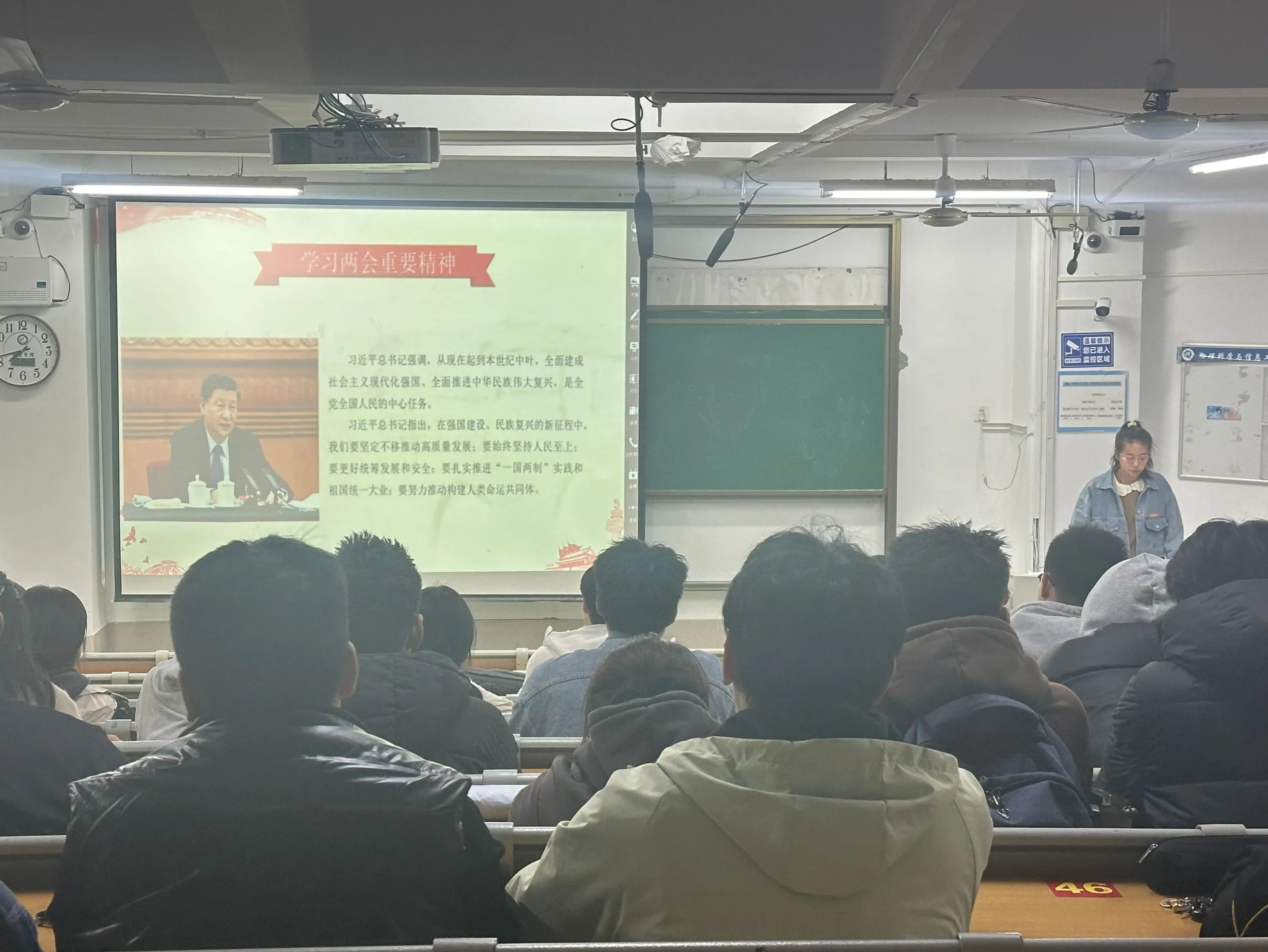 为加强学生思想政治教育,深入学习贯彻两会精神、关注两会热点,不断提高政治站位,3月24日,探花 于十一号楼C504开展“青年齐心跟党走,学习两会谋新篇”两会精神交流学习会,2022级2班团支书张淑佳为本次活动的主讲人,团委老师洪文静与2021、2022、2023级班长团支书共同参加本次活动。
