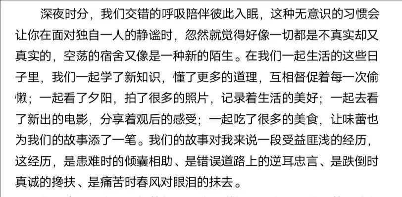 宿舍的故事,你我的青春。纸短情长,笔墨之间尽显宿舍美好。同学们的作品中,或是描述生病时舍友的关怀,或是分享第一次来到大学校园的感受,亦或是交流对未来的展望。那一幕幕温情时刻跃然纸上,感动着每一位读者。