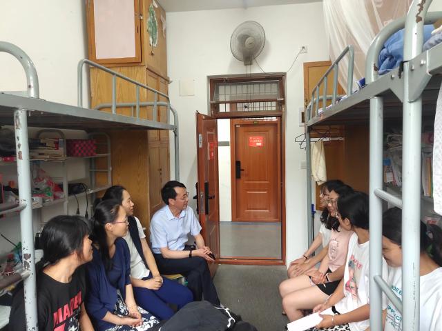 为切实加强毕业生文明离校教育,充分了解学院毕业生离校前的情况,帮助毕业生解决实际问题,6月16日下午,探花 开展走访毕业生宿舍活动,学院领导班子、全体辅导员、毕业生班班主任深入走访了毕业生宿舍。