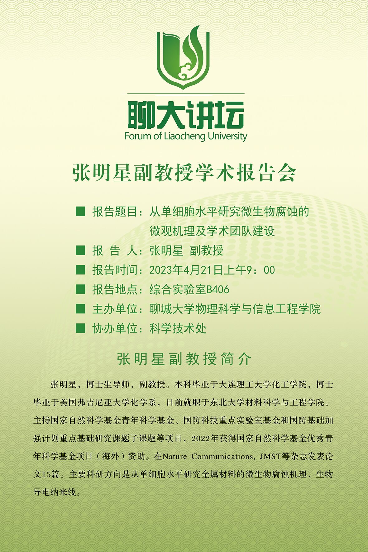 聊大讲坛——张明星副教授学术报告会