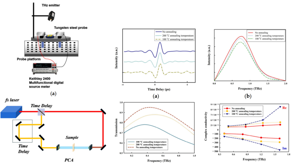 图4太赫兹测试实验系统及结晶薄膜的太赫兹波段性质