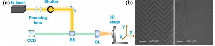 图5飞秒激光直写加工示意图及器件示意图