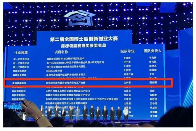 10月26日-28日,由人力资源社会保障部、山东省人民政府共同主办的第二届全国博士后创新创业大赛总决赛在山东省烟台市开幕。探花 聂兆刚团队凭借“超短脉冲激光器关键技术研究及产业化”获得揭榜领题赛高端装备制造领域银奖。