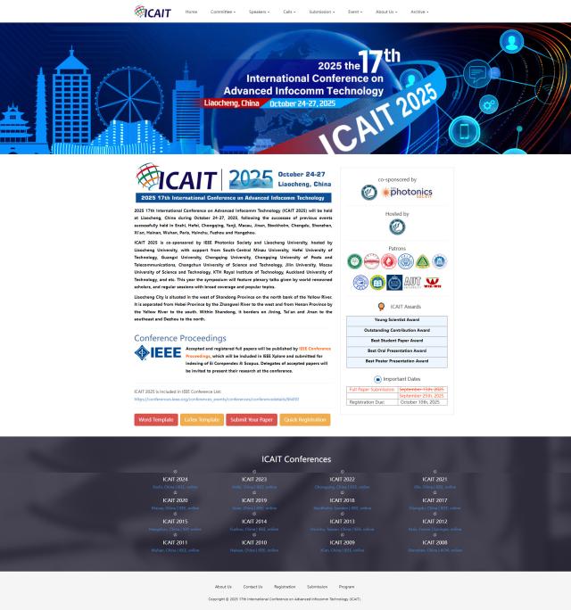 2025年IEEE第十七届先进信息通信技术国际会议(ICAIT 2025)将于2025年10月24日至27日在中国聊城举行。