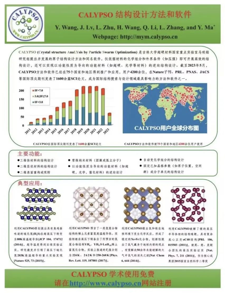 报告人简介:高朋越,吉林大学物质模拟方法与软件教育部重点实验室物理学院副教授,长期从事CALYPSO晶体结构预测方法和程序开发,参与编写了三维晶体结构预测、固-固相变过渡态结构预测、固-固界面结构预测和XRD逆向设计等功能模块,利用CALYPSO软件开展了系列高压下结构与物性的相关研究工作,在Acc.Chem.Res.、 Phys. Rev. B、Sci. Bulletin、Comput. Phys.Commun.等期刊发表SCI论文20余篇。