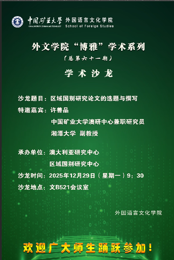 为推进跨学科人才培养,1月10日上午,副院长刘婷婷带队赴矿业工程学院调研,双方围绕英语专业“国际能源治理创新实验班”的课程...